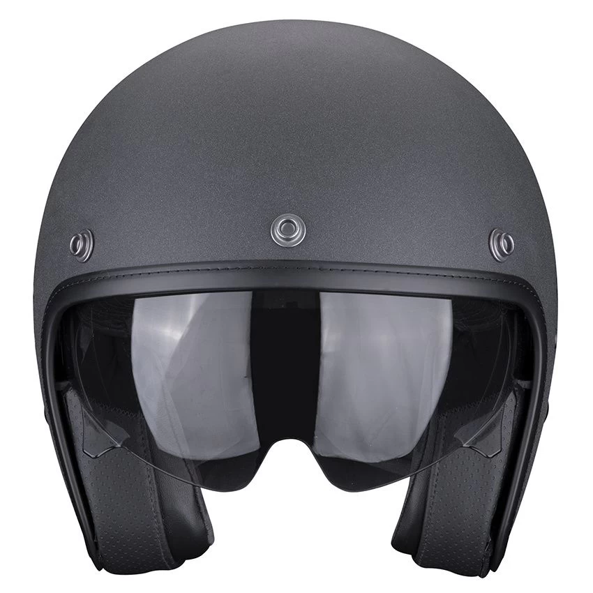 De Scorpion Belfast EVO Graphite motorhelm gaat back to basic als het aankomt om de puurheid en vrijheid van motorrijden. Deze vintage geïnspireerde jethelm vanuit het Easy Rider tijdperk voldoet helemaal aan de hedendaagse veiligheidsmaatstaven en de strengere ECE 22.06 norm. Voorzien van een wegklapbaar zonnevizier, luxueuze binnenvoering en microbuckle sluiting. De de montageknopen stellen je in staat een zonneklep of extern vizier te monteren.