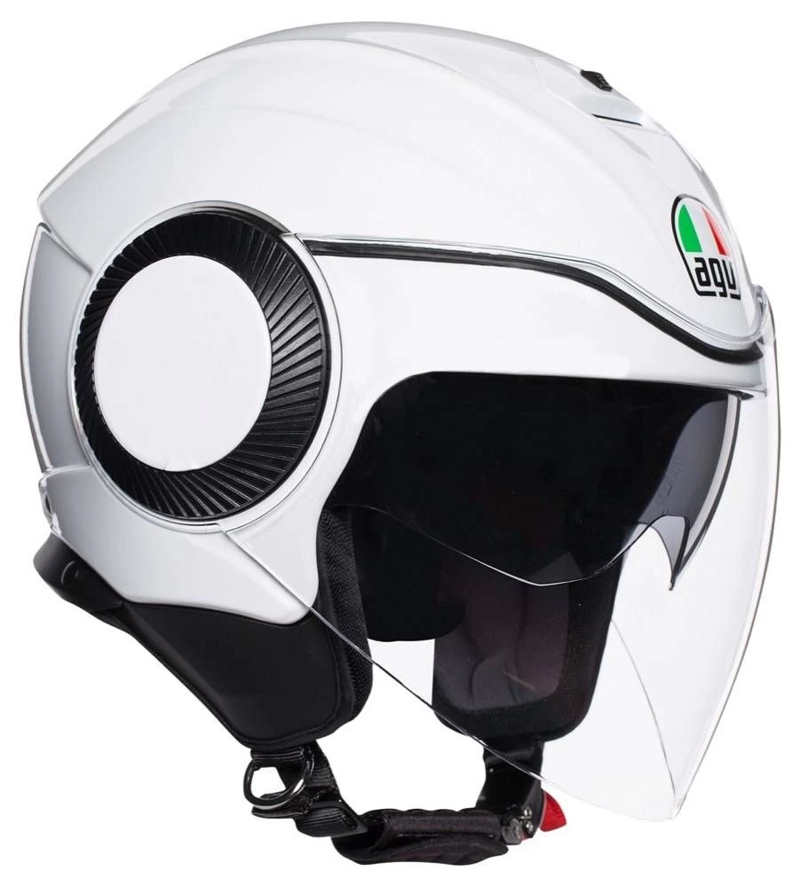 De AGV Orbyt combineert eenvoud met functionaliteit. Deze lichtgewicht jethelm bedient daarmee de stedelijke rijder die eenvoudige jethelm zoekt met een helder- en zonnevizier. Met een comfortabele pasvorm en kleine nekrand zet je de Orbyt zo op en kan je naar je volgende bestemming. Een Thermoplastische buitenschaal en een multi-density binnenschaal zorgen voor de juiste impactbescherming.