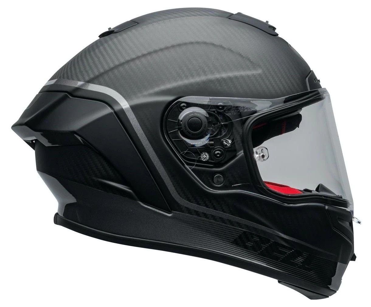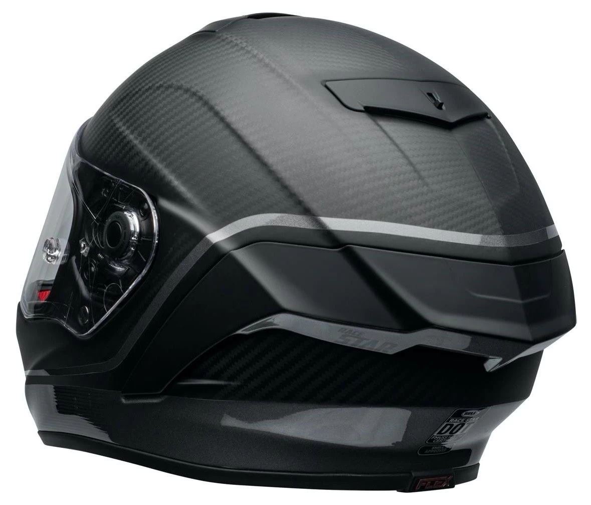 Gereduceerd in gewicht en met verbeterde pasvorm stelt de Bell Race Star Flex DLX Velocity zijn voorganger in de schaduw. Een hardcore racehelm met topprestaties als uitgangspunt. De per maat afzonderlijke helmschaal en de FLEX binnenschaal maakt hem ongekend presterend op het gebied van veiligheid. Het Panovision vizier dat zowel transparant als donker is inbegrepen zorgt voor een wijds blikveld in sportieve houding. De 3K carbon helmschaal is aerodynamisch geoptimaliseerd en het vizier voorzien van tear-off voorbereiding. Ontworpen voor het circuit en toch comfortabel genoeg voor sportief weggebruik.