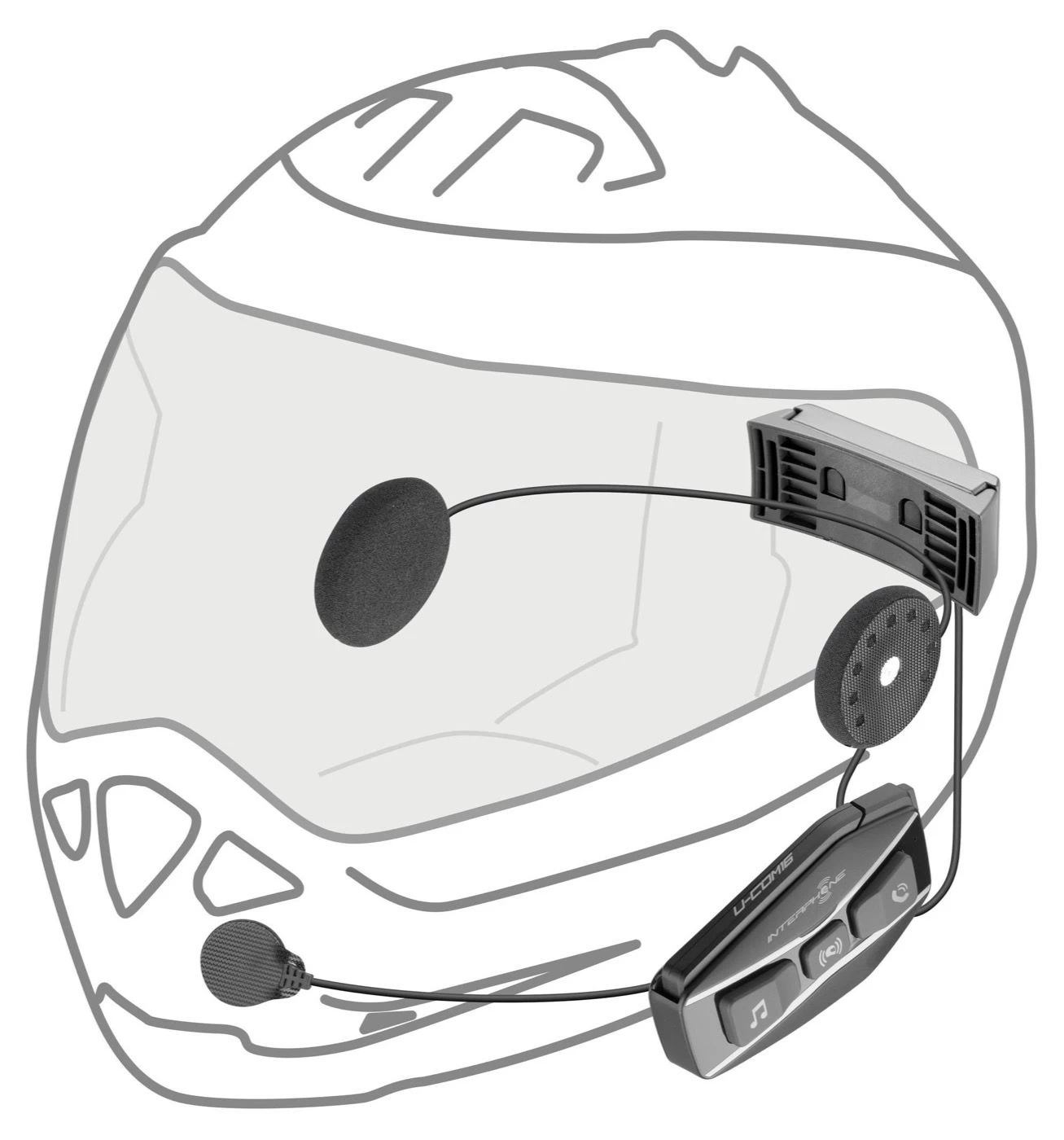 Inbegrepen bij het Interphone U-COM 16 communicatiesysteem tref je alle toebehoren om hem te installeren in twee motorhelmen. Ongeacht of dit een jet-, systeem- of integraalhelm betreft. Daarnaast is de module losgekoppeld van het accupack waardoor een slanker profiel is ontstaan. De USB-C kabel maakt het mogelijk om hem op te laden en te voorzien van nieuwe firmware updates via de computer.