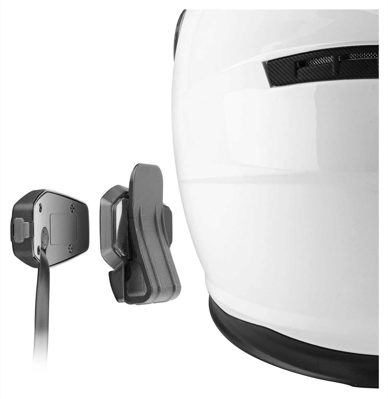 Bijkomend voordeel aan de Interphone U-COM4 communicatieset is de unit die zo compact mogelijk is gehouden. De batterij is extern toegevoegd op de achterzijde van de helm. Hierdoor heeft de unit zijdelings geen negatieve invloed op de aerodynamica. De unit is waterdicht volgens de IP67 norm.