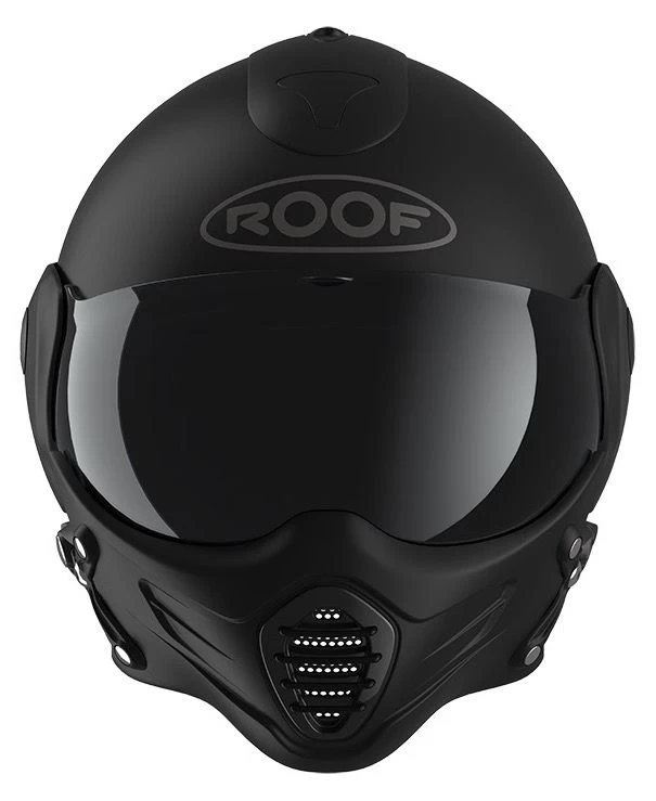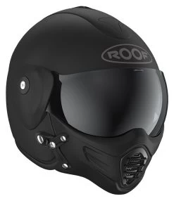 De ROOF Roadster Iron motorhelm is een excentrieke verschijning binnen de toch al opvallende modellen motorhelmen van het Franse designlabel. Deze urban georiënteerde jethelm heeft een gepatenteerd magnetisch bevestigd kinstuk en een onmiskenbaar stoer uiterlijk. Daarnaast zijn invloeden van de meest populaire Boxer helmen duidelijk zichtbaar en doet de uitstraling denken aan die van een pilotenhelm.